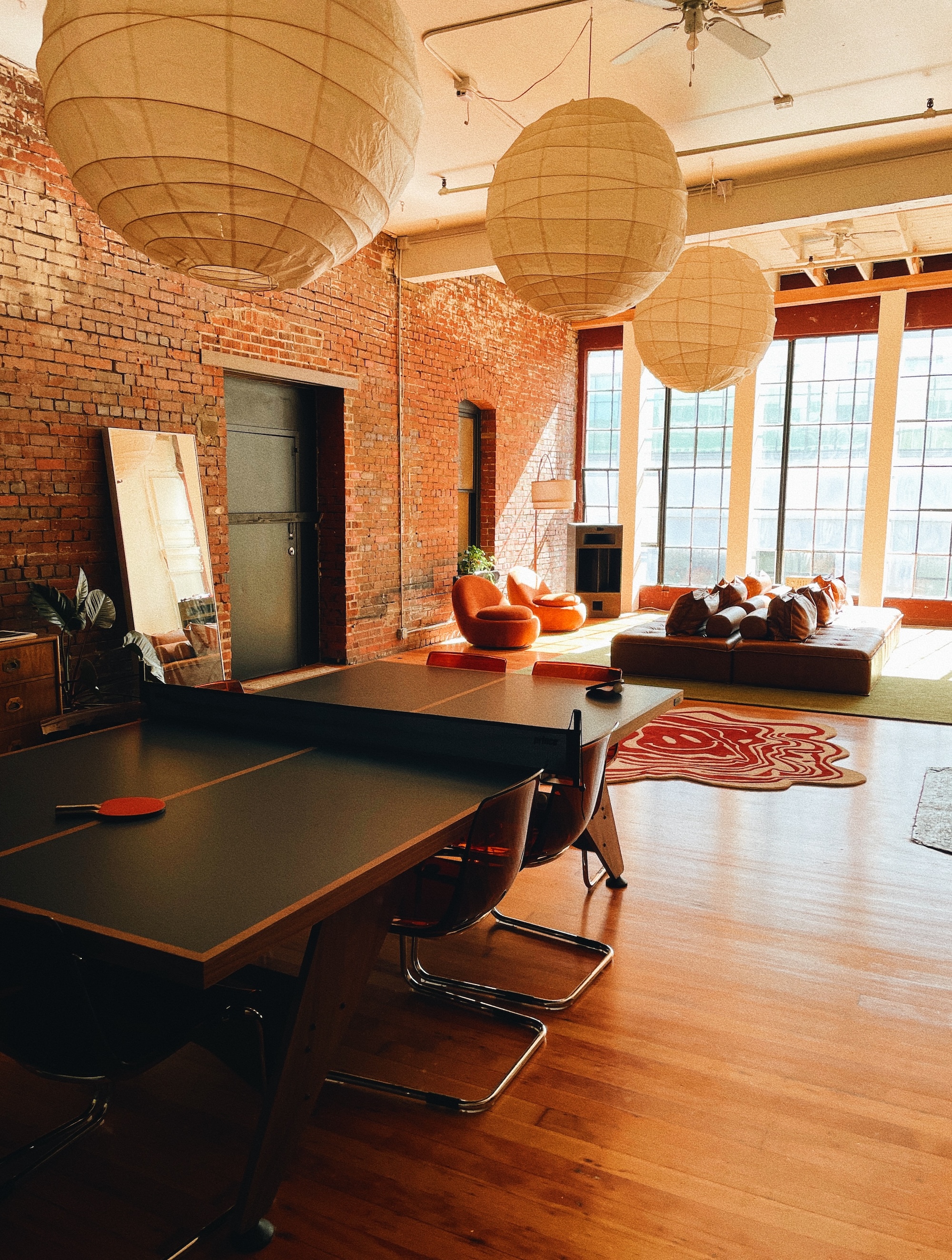 The Loft blends industrial architecture with vintage warmth, featuring sun-drenched wood floors, towering windows, and a brick backdrop. It creates a cinematic, inviting vibe that makes every gathering feel unique, whether it’s a low-key dinner, pop-up, or late-night celebration.